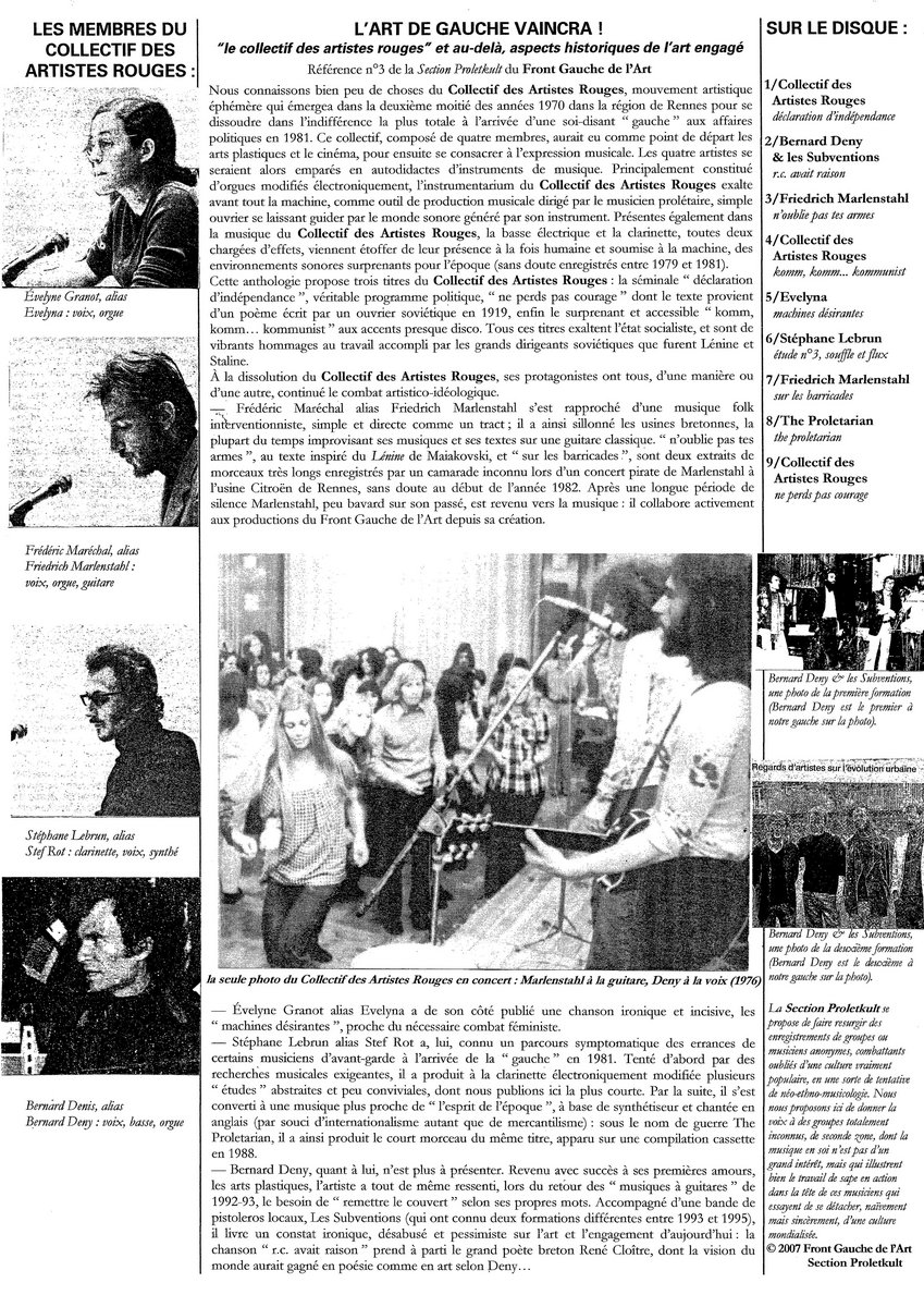 Collectif des Artistes Rouges : déclaration d'indépendance